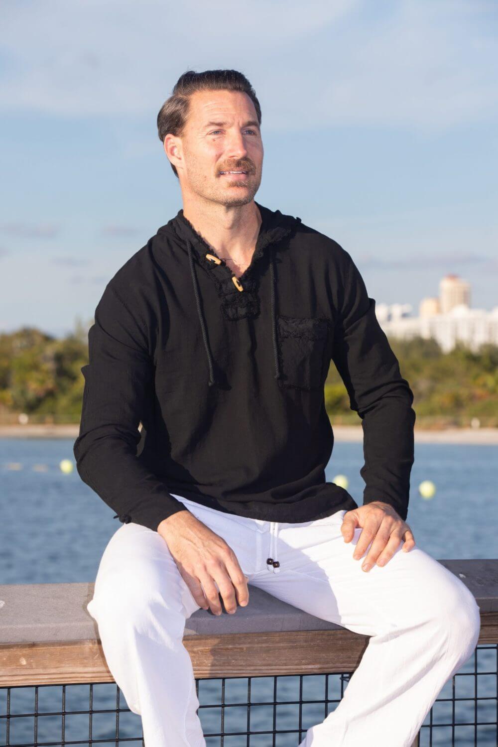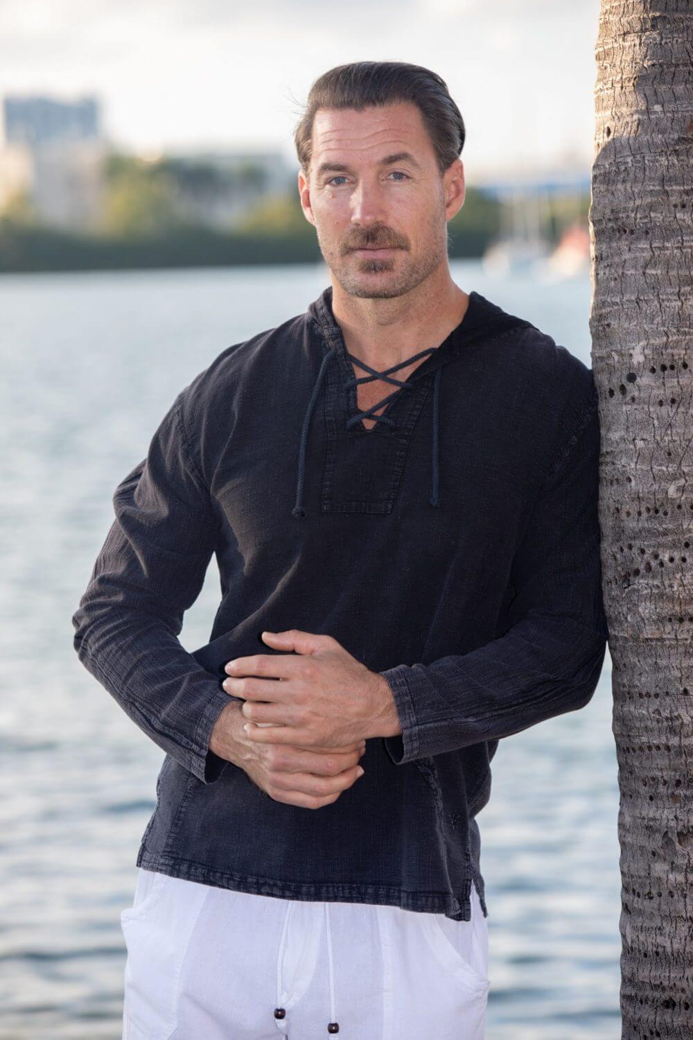 Cotton Natural men's v-neck onyx black Sky T-Shirt with logo. This style is made from the finest Peruvian Pima Cotton. Soft, comfortable and breathable.