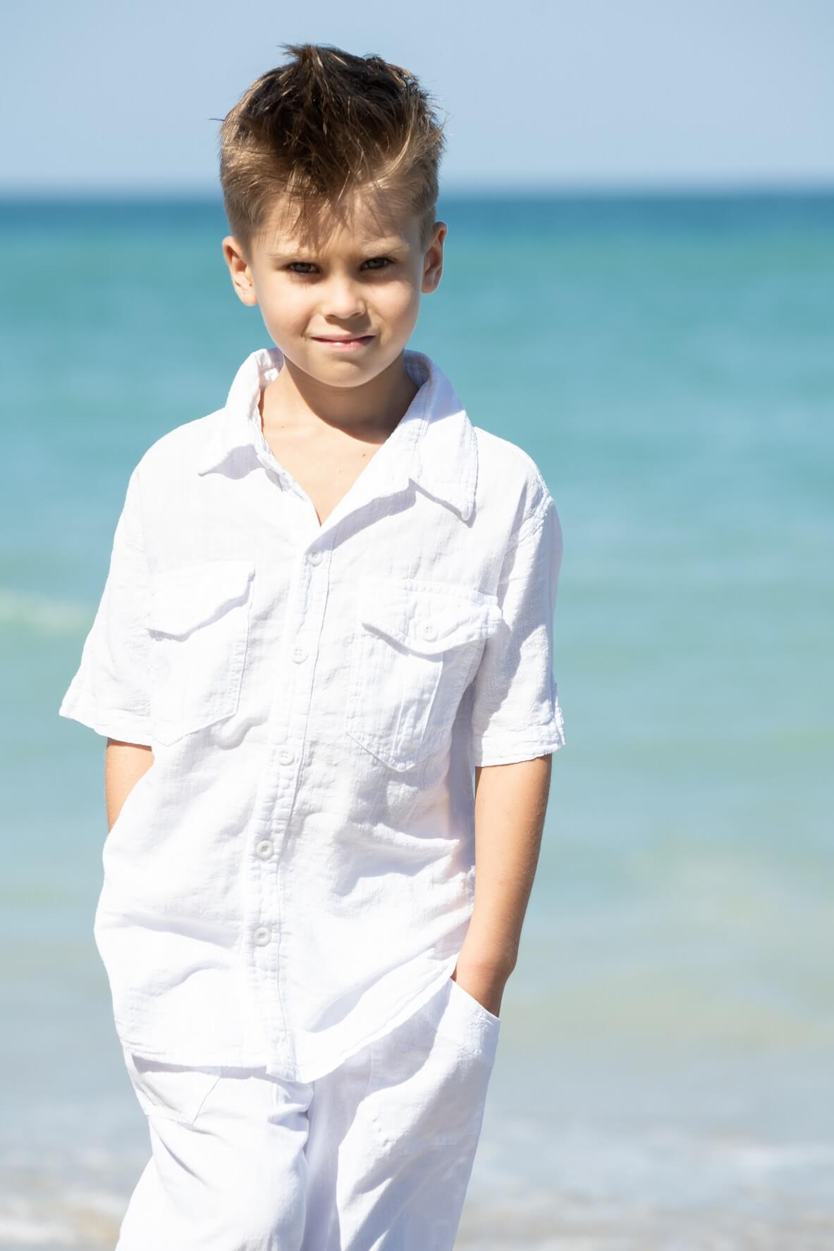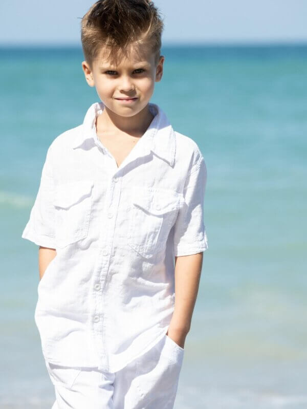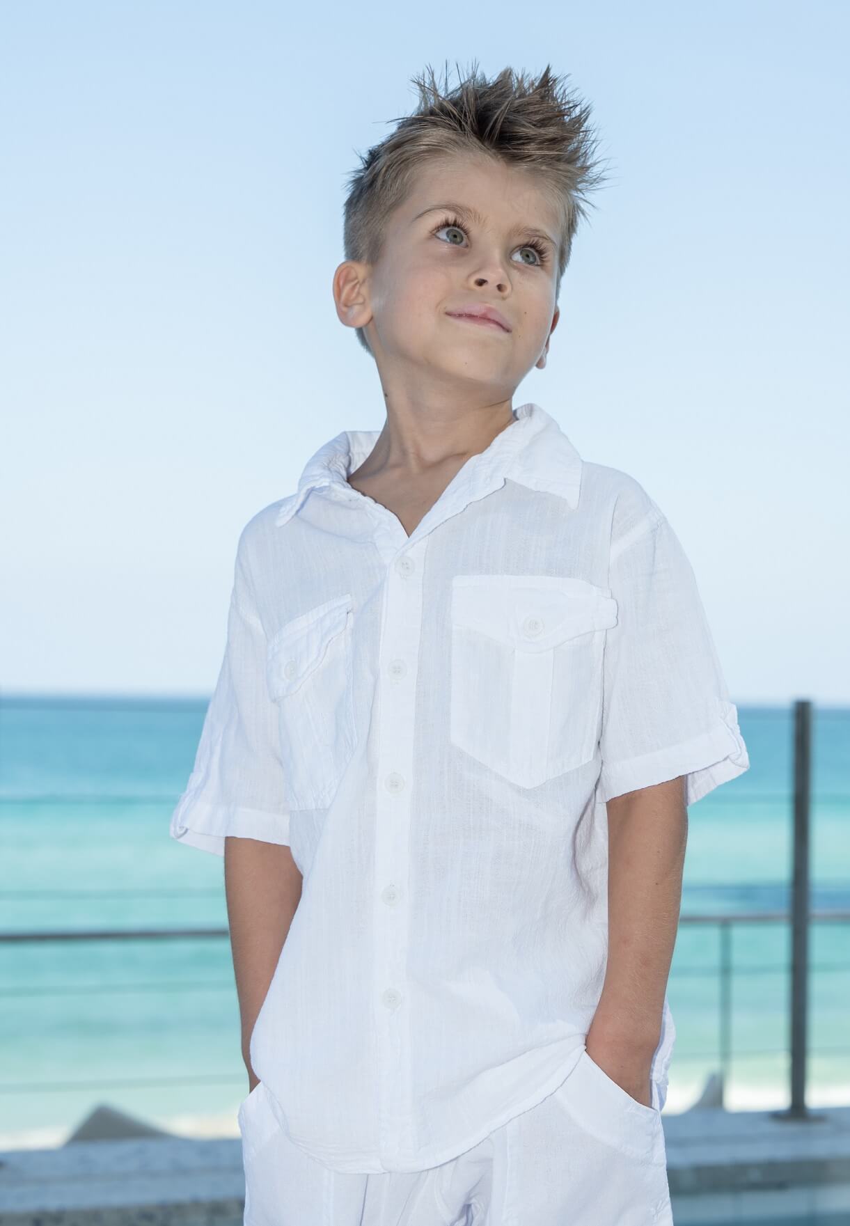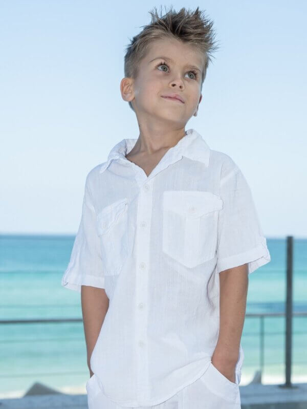 Cotton Natural boy’s short sleeve, double pocket button up. Made from the finest Peruvian Pima Cotton. Soft and comfortable, breathable relaxed fit.
