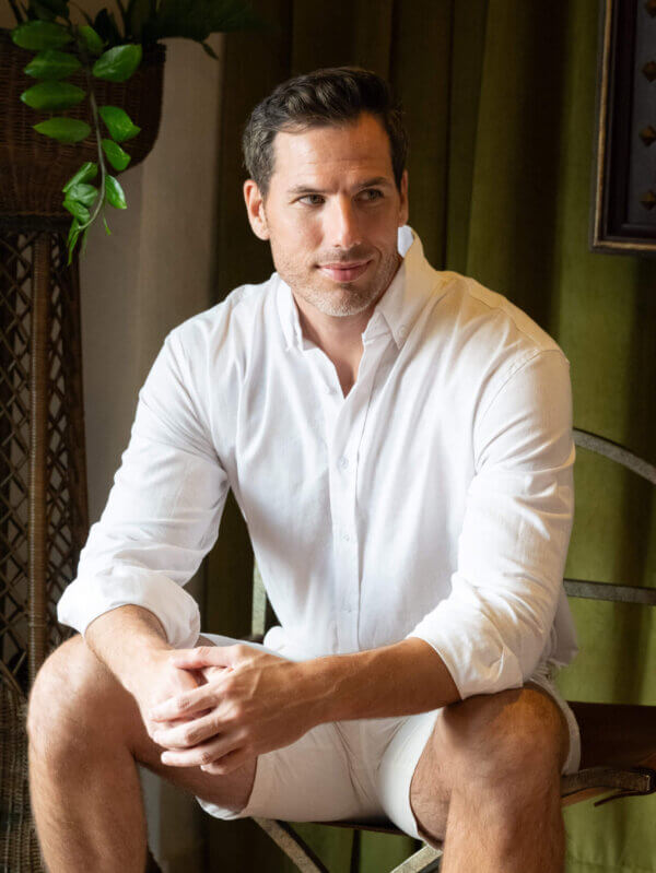 Cotton Natural Men’s long-sleeve Linen + Cotton blend button down shirt.