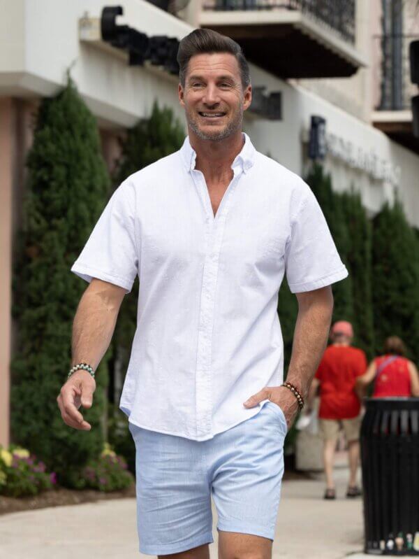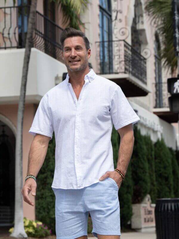 Cotton Natural Cotton and Linen blend Men’s shirt. Button down, short sleeves.