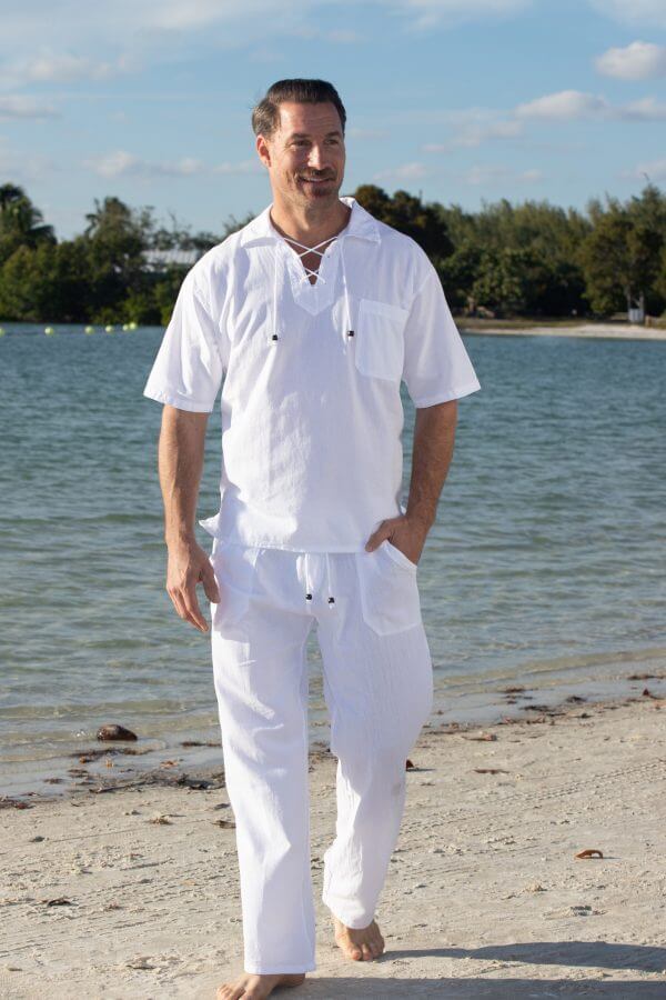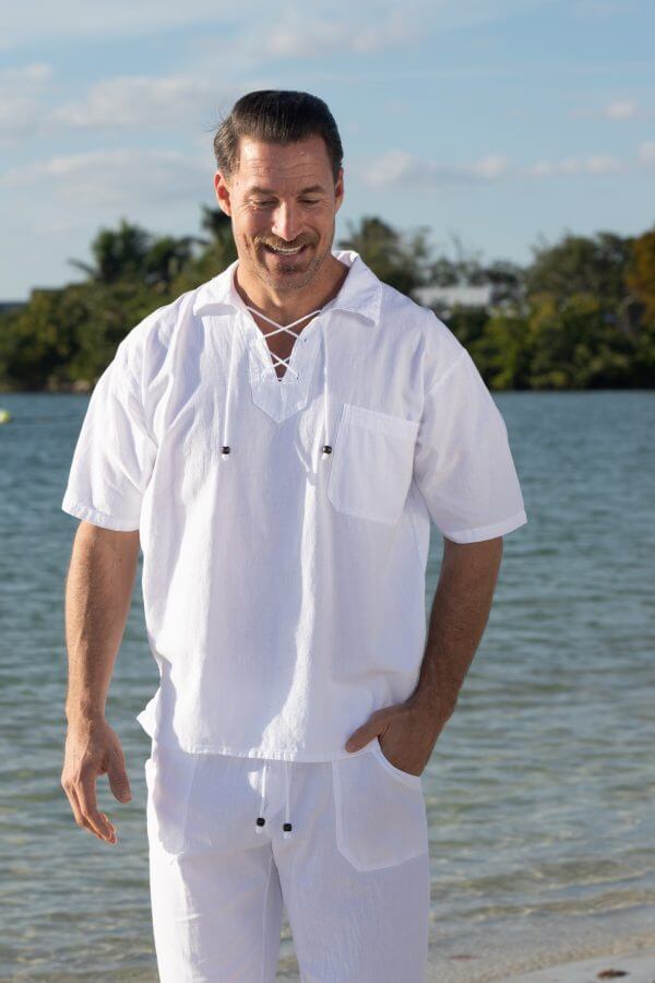 Cotton Natural cool and casual Men’s shirt. drawstrings beads, short sleeves.