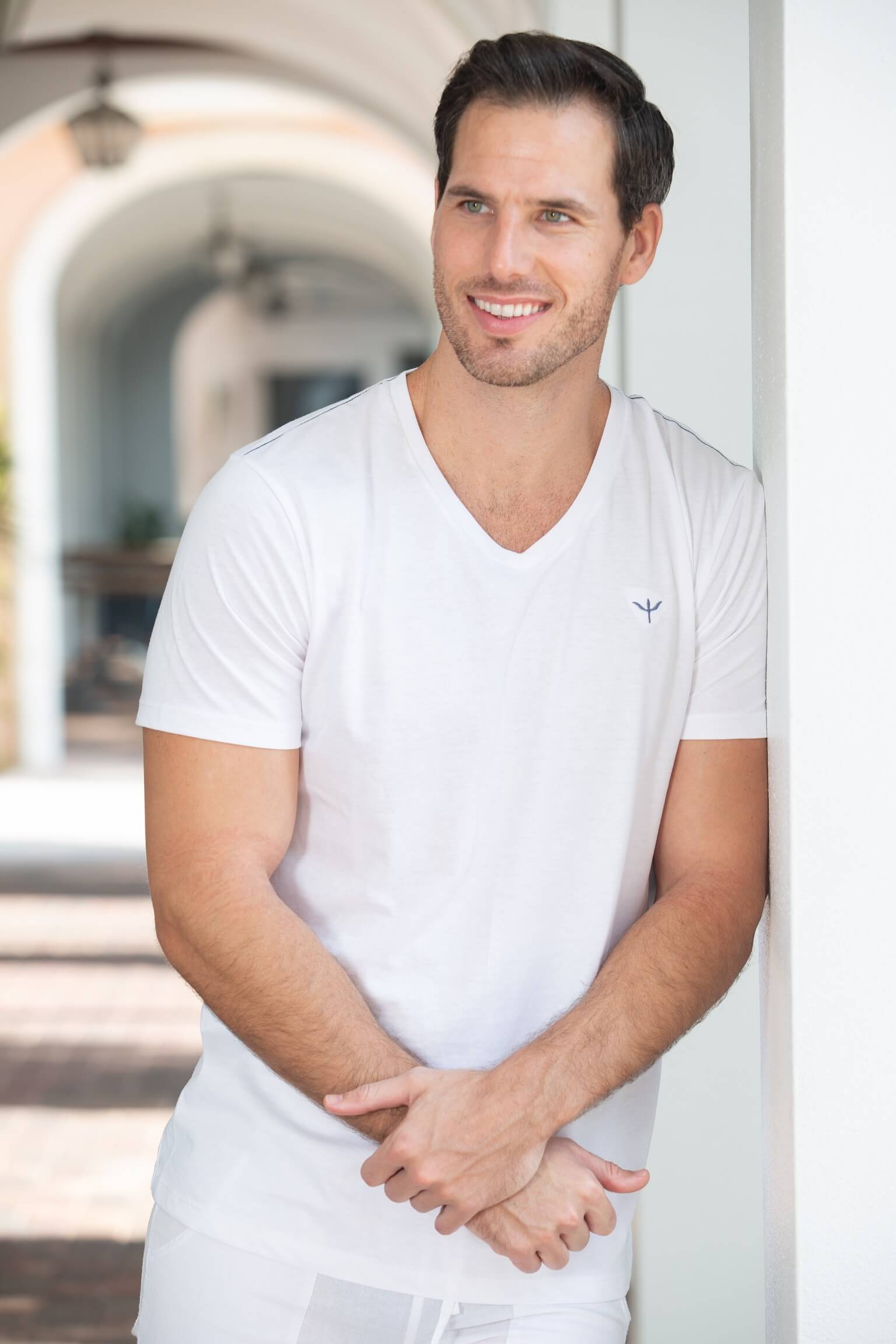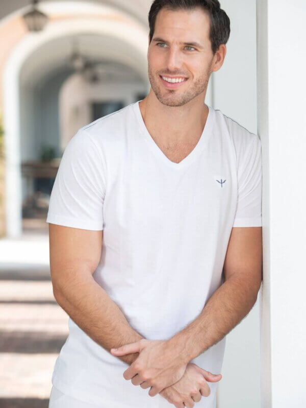 Cotton Natural men’s Sky V-Neck T-Shirt with logo.