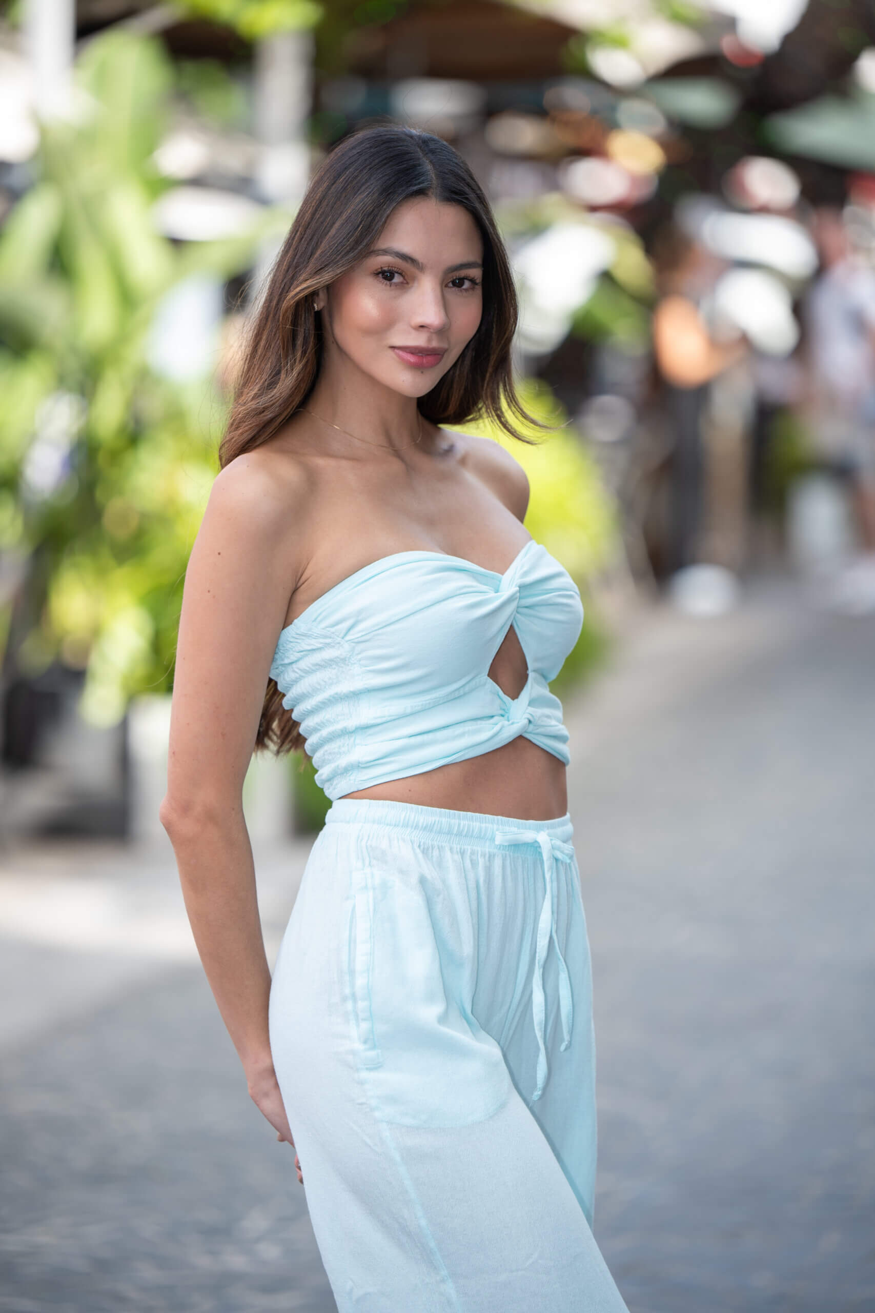 Cotton Natural women’s cross section tube top with elastic back in Baby Turquoise.